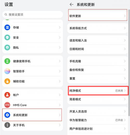 华为鸿蒙系统需关闭纯净模式:系统和更新一鸿蒙系统一关闭纯净模式